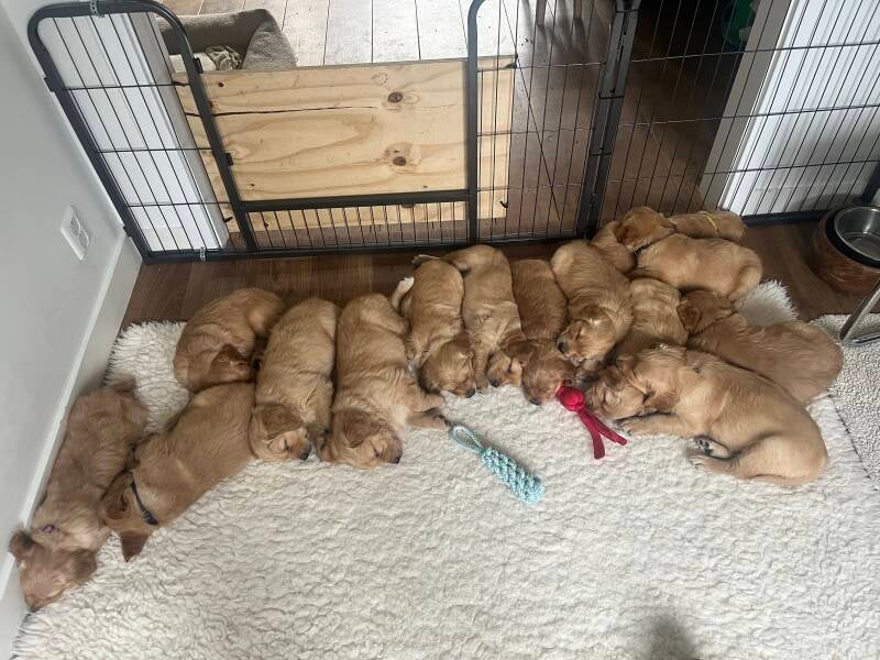 Fay heeft haar eerste nestje gekregen op 11 maart 2024, er zijn 14 prachtige pupjes geboren! Lees en kijk hieronder verder.